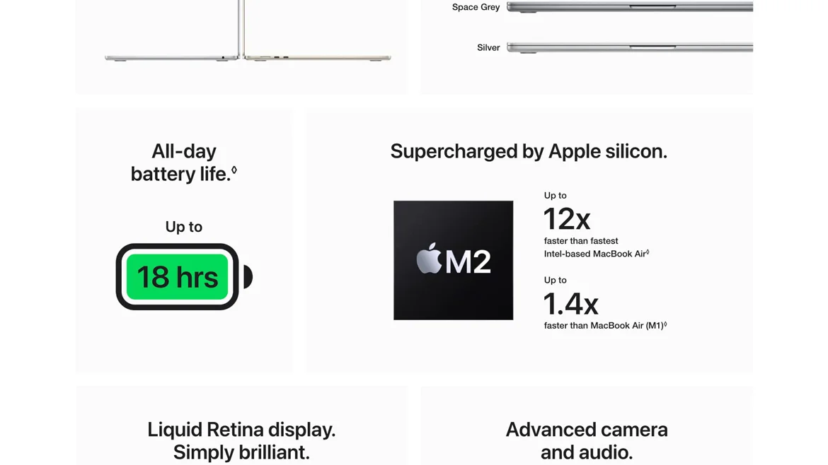 The M2 chip brings more speed to everything you do â whether youâre editing a video for class, collaborating on a business plan, or streaming a show while you shop online. And with all-day battery life, you can leave the power adapter at home.